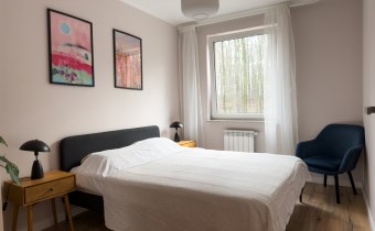 Układ mieszkania zapewnia komfortowe oddzielenie strefy dziennej od prywatnej.