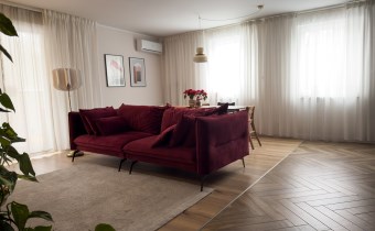 salon: sofa, komoda, stół